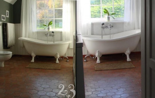 Utilizzando un impregnante, possiamo anche modificare l’effetto visivo. È possibile scegliere tra due finiture: effetto bagnato in versione opaca o semilucida, che esaltano il colore originale della piastrella e facilitano la manutenzione della superficie in futuro.